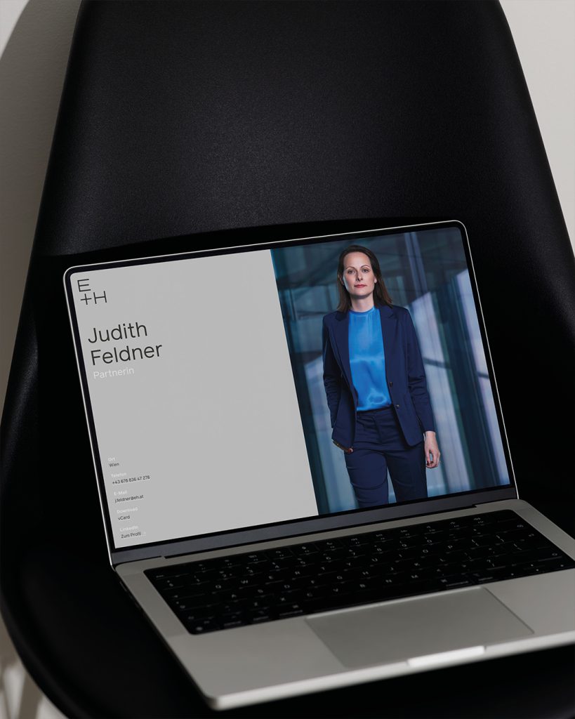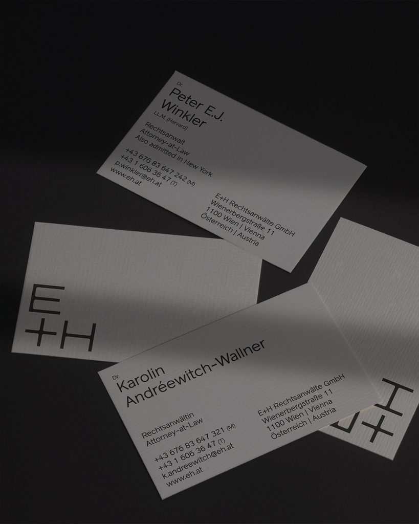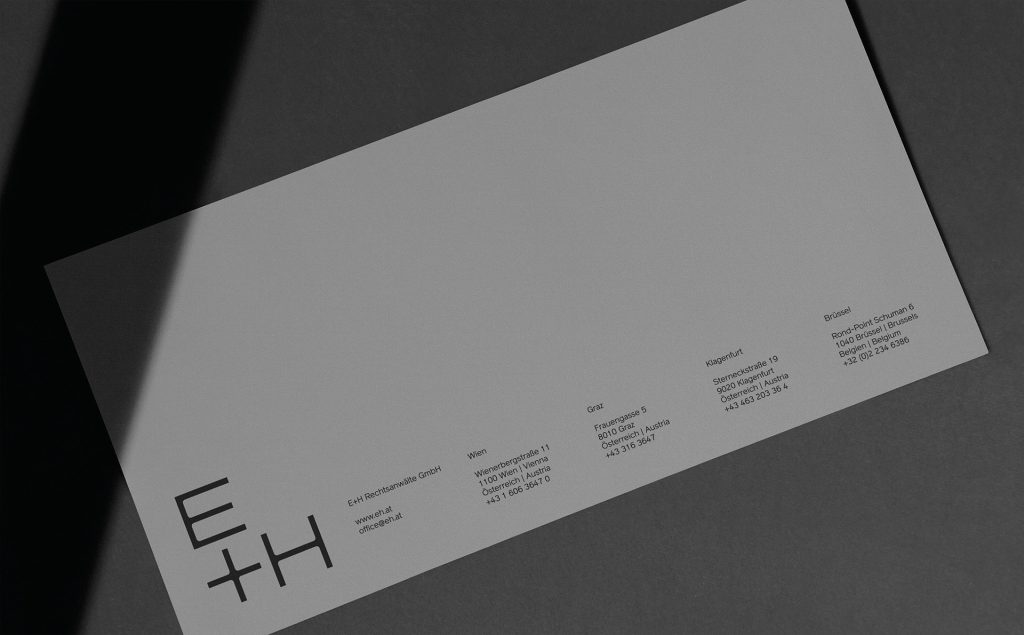 E+H ist eine Rechtsanwaltskanzlei mit Sitz in Wien, Graz, Klagenfurt und Brüssel, die sich vor allem durch ihre Innovationskraft und ihre Arbeit im Netzwerk als die nächste Generation an Rechtsanwält:innen etabliert hat. E+H stellen alte Ideologien, Prinzipien und Methoden infrage und begegnen diesen mit neuem Denken. Eine Next-Generation Rechtsberatung sozusagen. Denn Gesetze sind da, um gebrochen zu werden. Oder so ähnlich. Deshalb lebt das Rebranding von einem direkten Spannungsfeld. Nämlich: Next-Generation auf der einen Seite.