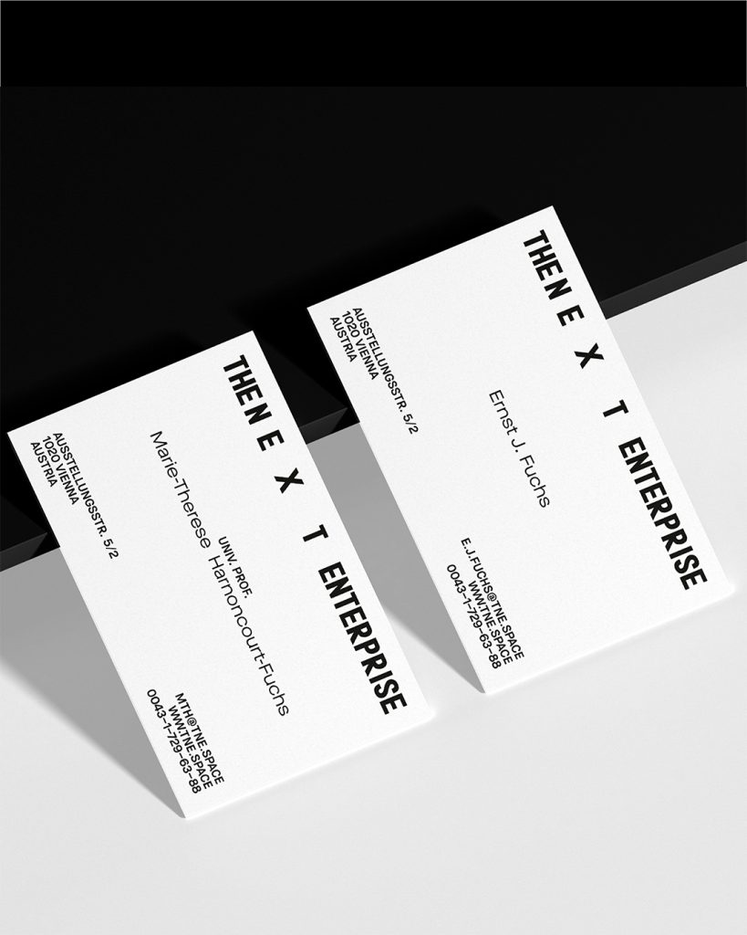 Das grafische Erscheinungsbild des Büros präsentiert sich nun so wandlungsfähig wie ihre Gründer:innen. Egal ob Web, Visitenkarten oder Portfolio: das Logo und die Farbwelt passen sich immer dem Ausgabeformat an. Die Identität wird somit verspielt, ohne ihren Projekten die Show zu stehlen. Denn am Ende des Tages geht es vor allem um The Next Enterprise, um das Konzipierte, das Kreierte und das Gebaute.